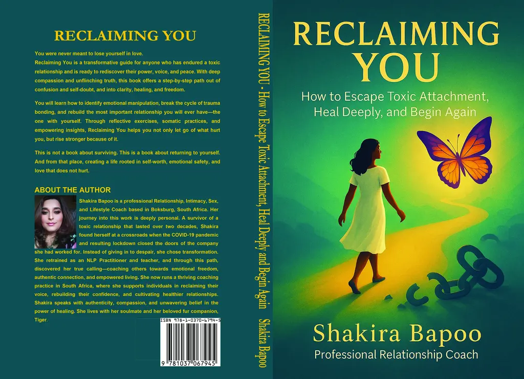 I am the author of Reclaiming You – How to Escape Toxic Attachment, Heal Deeply, and Begin Again, a compassionate roadmap to reclaiming your emotional freedom, and The Big Swing – A Definitive Guide to the Swingers’ Lifestyle for South Africans, the first book of its kind on the African continent exploring ethical non-monogamy. These works reflect my passion for blending deep emotional insight with practical tools that empower you to transform your relationships and reclaim your sense of self.